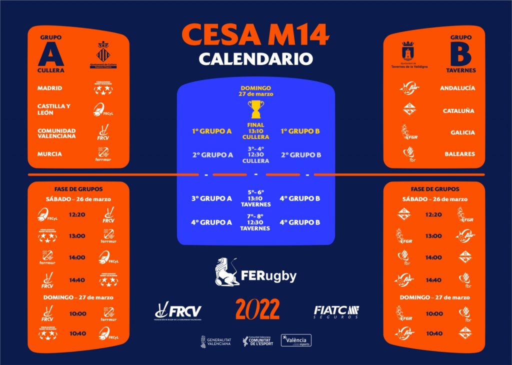 SABADO 26 Sub 14 Torneo autonómico Cullera (Valencia) Baleares – Cataluña 14:00 hrs Andalucía – Baleares 14:40 hrs DOMINGO 27 Galicia – Baleares 10:00 hrs Retransmisión es streaming por la web de la Federación Española https://www.ferugby.tv/ (necesario registrarse) Sub 16 9ª Jornada Germans Escales – 11:00 hrs R.C. Ponent – El Toro R.C. Sub 18 Aplazado […]