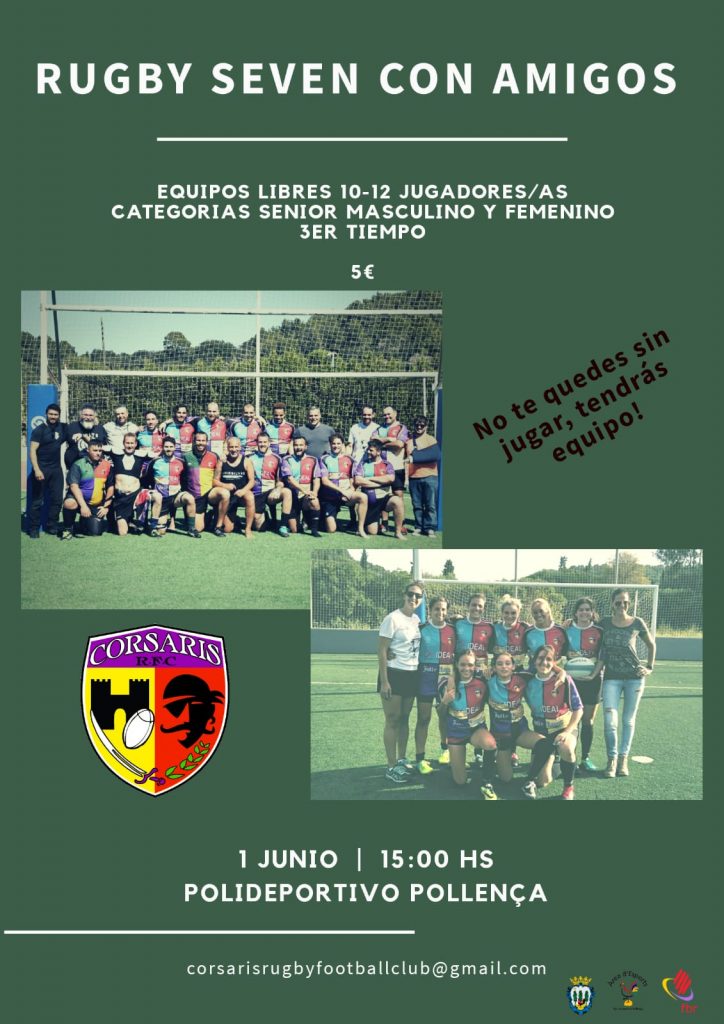 Este sábado en polideportivo de Pollença, Corsaris R.F.C. organiza un torneo de rugby 7 para la categoría senior en las modalidades de masculino y femenino. Para mas información dirígete al correo: corsarisrugbyfootballclub@gmail.com